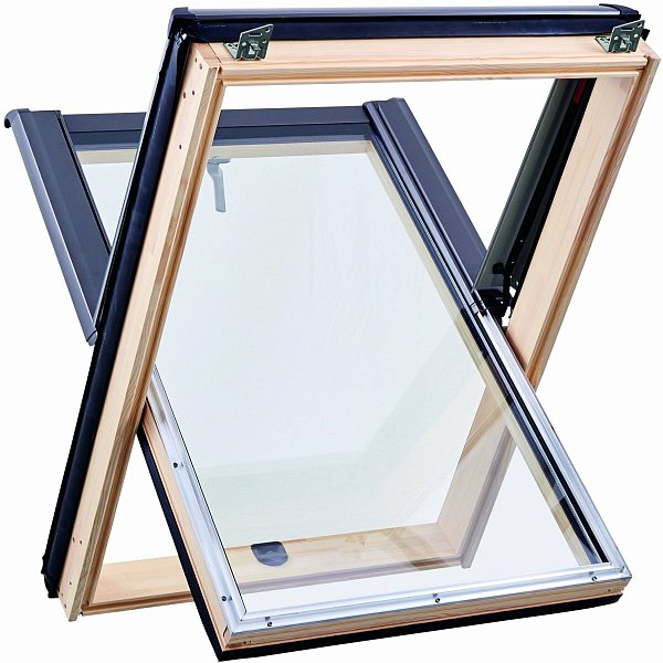 Окно R45 Н200 с термоблоком, 54х118 см, из дерева (однокамерное, среднеповоротное), Roto