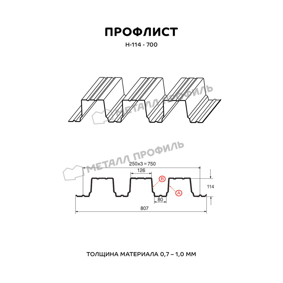 Профлист Металл Профиль Н-114 0,9 Цинк Бесцветный