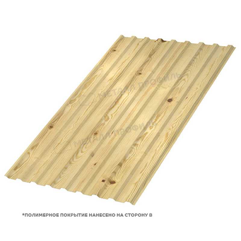 Текстурированная поверхность профлиста имитирует натуральную текстуру древесины сосны, что придает ему эстетичный и приятный внешний вид. Это делает его идеальным выбором для отделки фасадов зданий, крыш, заборов и других строительных конструкций.