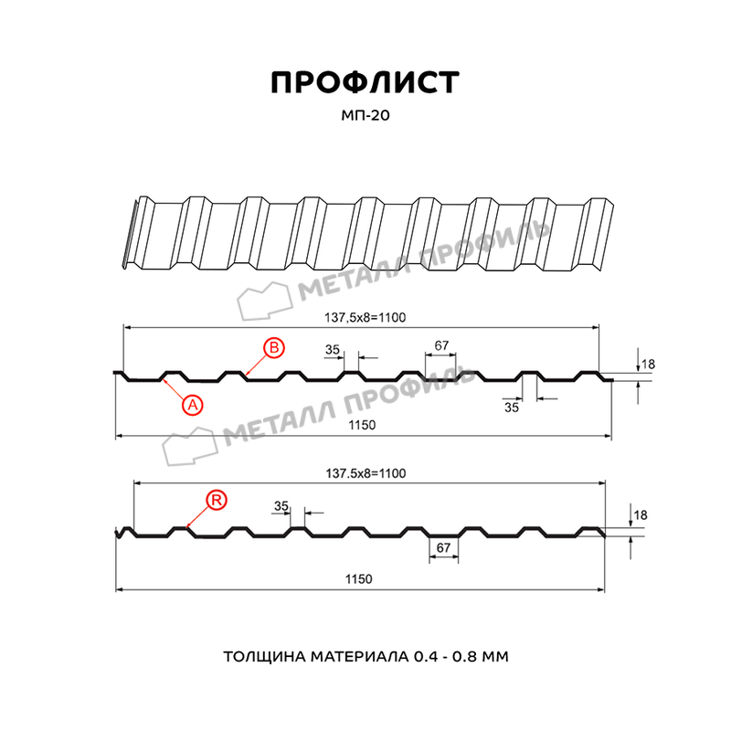 Профлист Металл-Профиль МП-20 ECOSTEEL® обладает высокой устойчивостью к воздействию атмосферных условий, коррозии и механическим повреждениям. Он легко монтируется и имеет небольшой вес, что упрощает его транспортировку и установку.