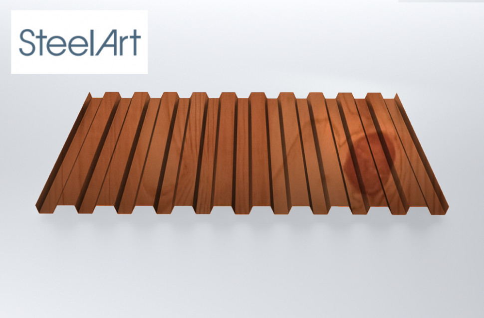 Профнастил SteelX C21 SteelArt 0,4 Золотой дуб - это качественный материал для кровли, который сочетает в себе прочность и эстетичность. Изготовленный из оцинкованной стали толщиной 0,4 мм, он обладает высокой устойчивостью к внешним воздействиям и долговечностью.