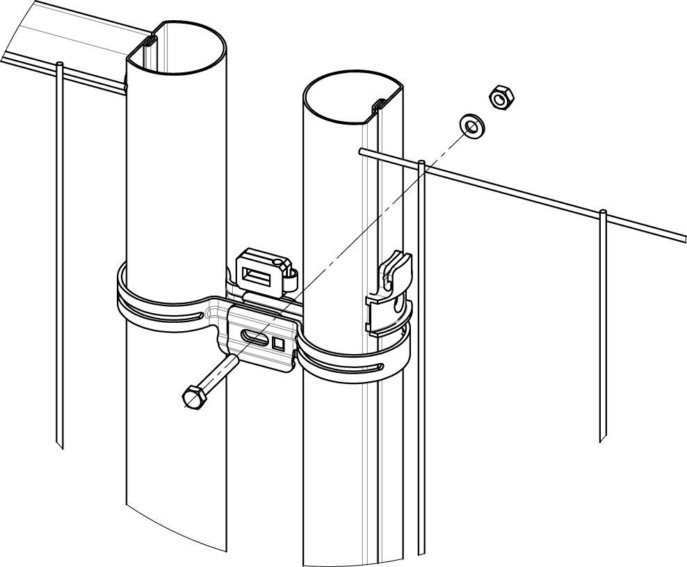 • Два хомута 51 с вкладышем, болтом М6, гайкой и шайбой и одно крепление для рулонной сетки - это выполняет роль петли