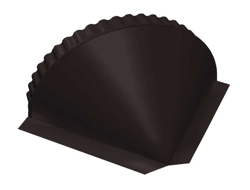 При монтаже полукруглого конька для эстетики необходимы заглушки на торцах и сопряжениях конька и хребта (торцевая)  и окончаниях хребтов (конусная).